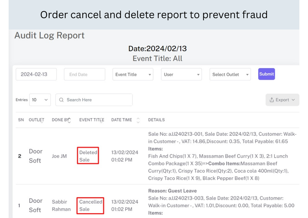 - Order cancel and delete report to prevent fraud